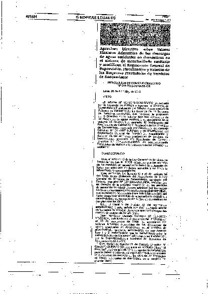 Aprueban Directiva sobre Valores Máximos Admisibles de las descargas de aguas residuales no domésticas en el sistema de alcantarillado sanitario y modifican el Reglamento General de Supervisión, Fiscalización y Sanción de las Empresas Prestadoras de Servicios de Saneamiento.