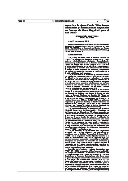 Aprueba la ejecución de Simulacros Nacionales y Simulacros Regionales de Gran Magnitud para el año 2015