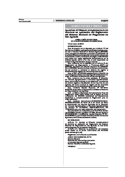 Se aprueba el Glosario complementario de términos en aplicación del Reglamento del Sistema Nacional de Plaguicidas de Uso Agrícola, el cual forma parte integrante de la presente Resolución.