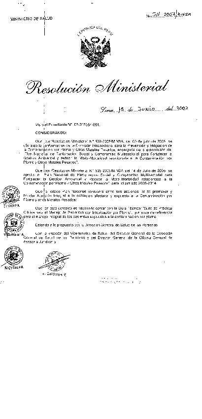 Mediante esta Resolución se aprueba la Guía Técnica de Resolución Práctica Clínica para el Manejo de Pacientes con Intoxicación por Plomo con la finalidad de contribuir a la reducción de la morbilidad, mortalidad y discapacidad por la exposición e intoxicación por plomo, mejorando así la calidad de vida de las personas afectadas y expuestas a factores de riesgos ambientales vinculados a este metal.