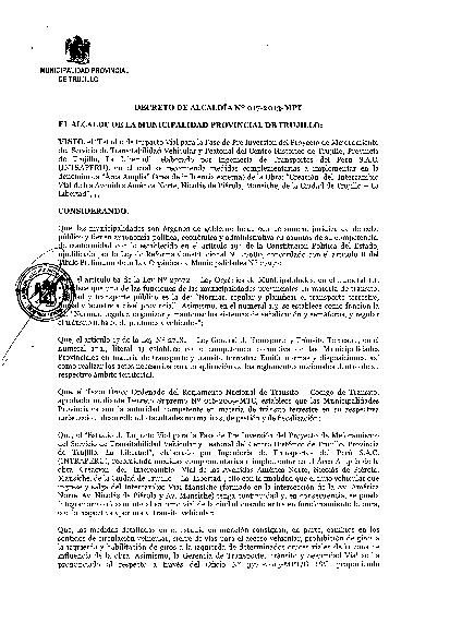 Aprueba las modificaciones en la circulación vehicular y peatonal de las vías del área de influencia de la obra: Creación del Intercambio Vial de la Avenidas América Norte, Nicolás de Piérola, Mansiche, de la Ciudad de Trujillo - La Libertad"