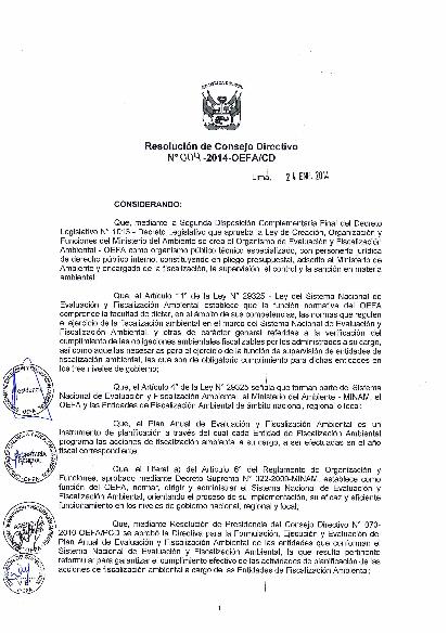 Mediante esta Resolución se deja sin efecto la “Directiva para la Formulación, Ejecución y Evaluación del Plan Anual de Evaluación y Fiscalización Ambiental de las entidades que conforman el Sistema Nacional de Evaluación y Fiscalización Ambiental”, aprobada mediante Resolución de Presidencia de Consejo Directivo N° 070-2010-OEFA/PCD y Aprueba los Lineamientos para la Formulación, Aprobación y Evaluación del Plan Anual de Evaluación y Fiscalización Ambiental - PLANEFA, los cuales contienen ocho (8) Artículos, dos (2) Disposiciones Complementarias y dos (2) Anexos, y forman parte de la presente Resolución.