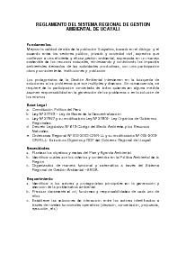 La presente norma aprueba la creación del Sistema Regional de Gestión Ambiental de Ucayali y su Reglamento; el mismo que consta de nueve (09) Títulos y veintidos (22) artículos.