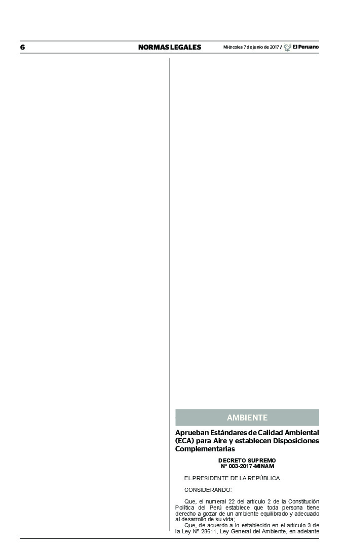 Aprueban Estándares de Calidad Ambiental (ECA) para Aire y establecen Disposiciones Complementarias