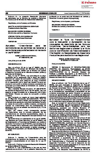 Mediante la presente resolución ministerial se aprueba la “Guía de Procedimientos para la Evaluación y Aprobación de las propuestas de desarrollo de los Parques Industriales Tecno-Ecológicos para los Gobiernos Regionales y Locales” y la “Guía para la Identificación de Potencialidades y Priorización de Necesidades de Desarrollo Productivo para los Gobiernos Regionales”.