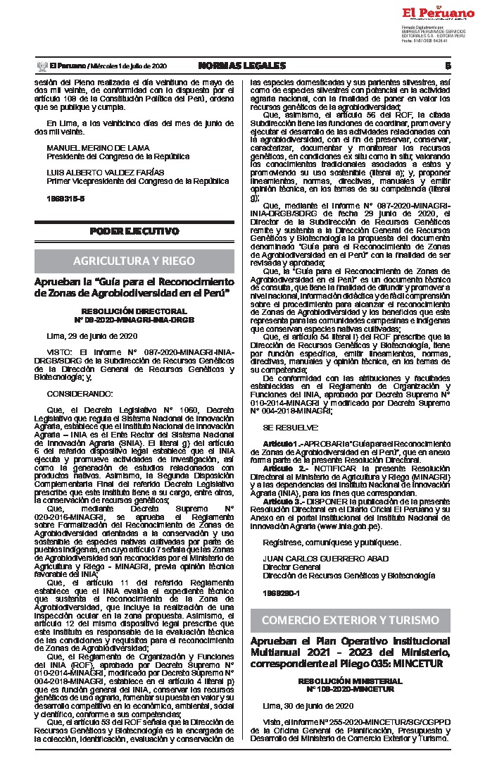 Aprueban la “Guía para el Reconocimiento de Zonas de Agrobiodiversidad en el Perú”