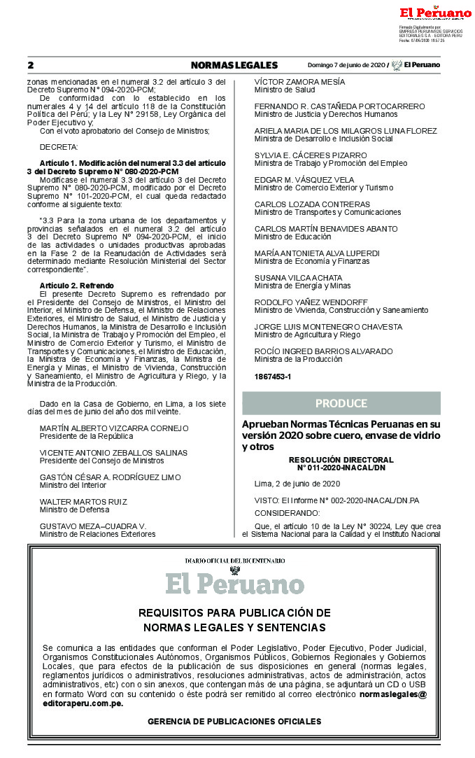 Aprueban Normas Técnicas Peruanas en su versión 2020 sobre cuero, envase de vidrio y otros