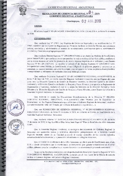 Aprueban el Plan de Ecoeficiencia de la Autoridad Regional Ambiental Amazonas para el 2019