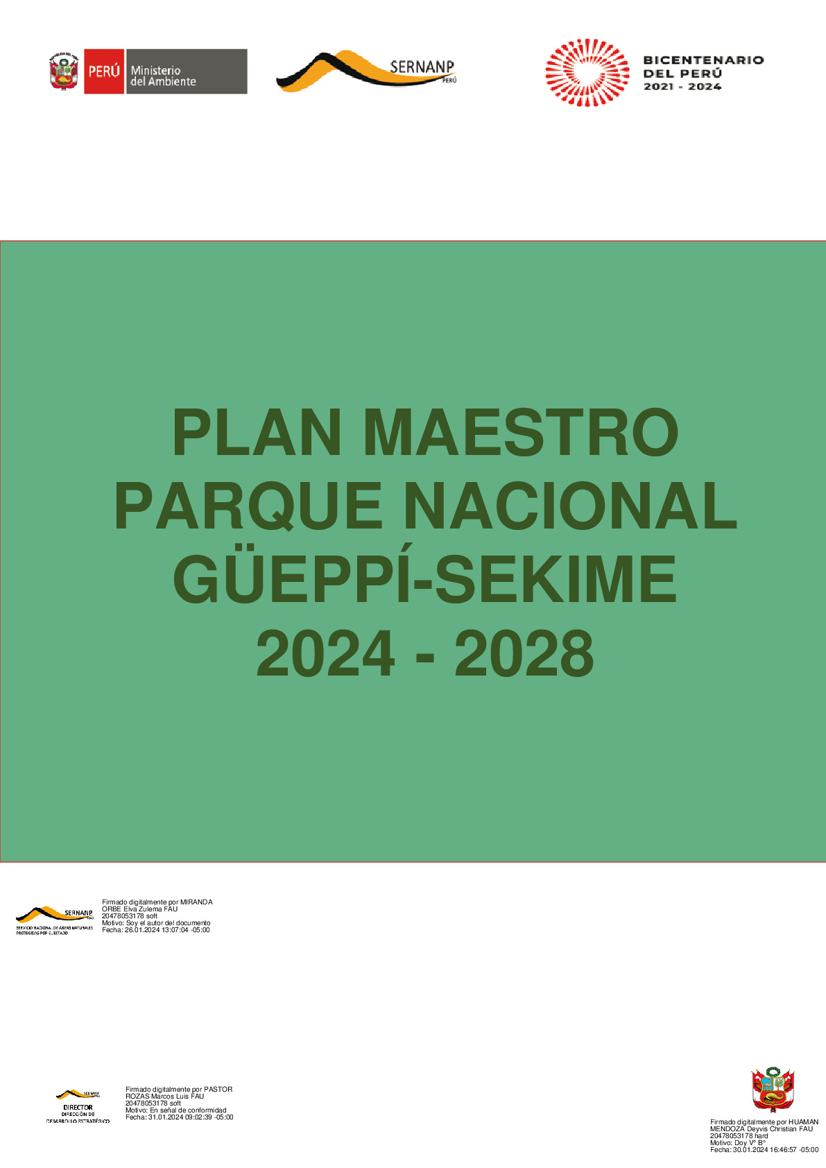 Aprueban el Plan Maestro del Parque Nacional Güeppí-Sekime, periodo 2024-2028