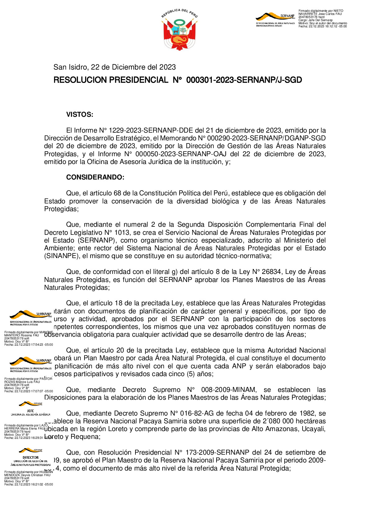 RESOLUCION PRESIDENCIAL N° 000301-2023-SERNANP/J-SGD