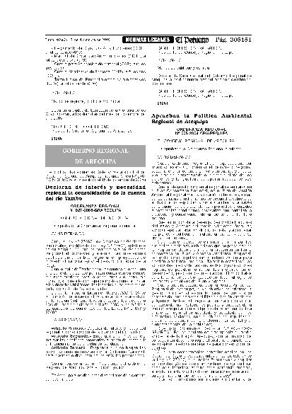 Aprueban la Politica Ambiental Regional de Arequipa