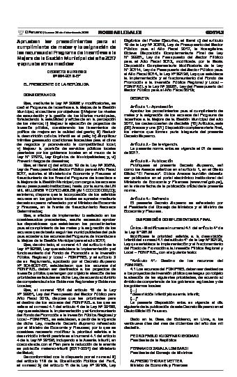 Aprueban los procedimientos para el cumplimiento de metas y la asignación de los recursos del Programa de Incentivos a la Mejora de la Gestión Municipal del año 2017 y aprueba otras medidas