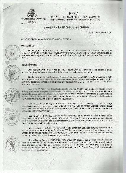 Ordenanza Municipal que aprueba la propuesta de Zonificación Ecológica Económica de la Cuenca del Alto Mayo