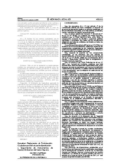 Reglamento de Participación Ciudadana para la Evaluación, Aprobación y Seguimiento de Instrumentos de Gestión Ambiental del Sector Agrario