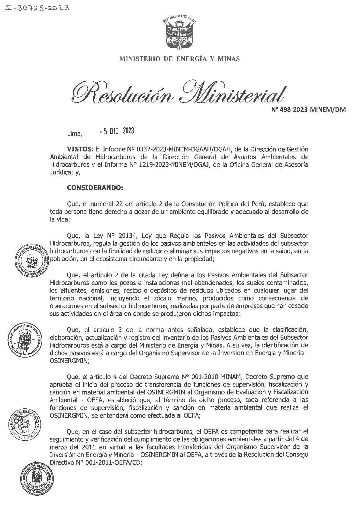 Aprueban la Séptima Actualización del Inventario de Pasivos Ambientales del Subsector Hidrocarburos