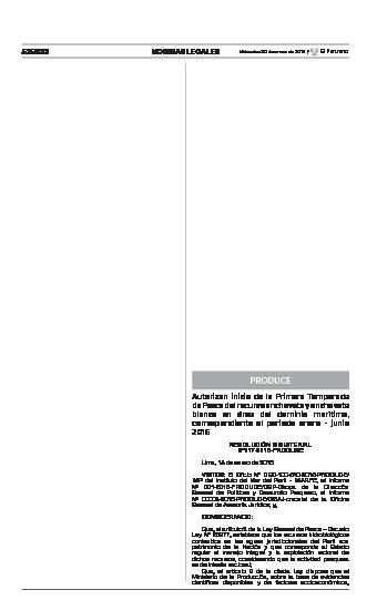 Por medio de la presente se autoriza el inicio de la Primera Temporada de Pesca del recurso anchoveta (Engraulis ringens) y anchoveta blanca (Anchoa nasus), en el área marítima comprendida entre los 16°00´LS y el extremo sur del dominio marítimo del Perú, correspondiente al período enero – junio 2016. El inicio de la Primera Temporada de Pesca regirá a partir de la 00:00 horas del noveno día hábil de publicada la presente Resolución Ministerial, siendo la fecha de conclusión, una vez alcanzado el Límite Máximo Total de Captura Permisible de la Zona Sur – LMTCP-Sur autorizado en el artículo 2 de la presente Resolución Ministerial, o en su defecto, no podrá exceder del 30 de junio de 2016. La fecha de conclusión de la Primera Temporada de Pesca 2016 de la Zona Sur podrá ampliarse o reducirse en función a las condiciones biológicas ambientales, previo informe del Instituto del Mar del Perú, a través de la expedición de la Resolución Ministerial respectiva.