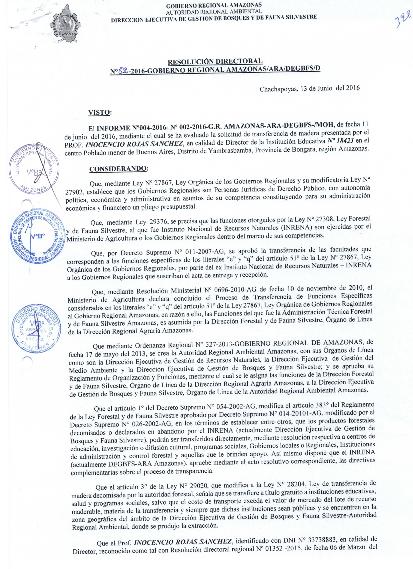 Autorizar la transferencia de madera - I.E N° 117-Buenos Aires- Yambrasbamba