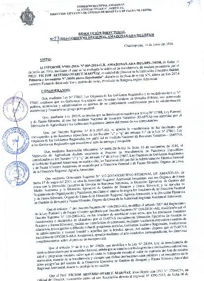 Autorizar la transferencia de 90 piezas de madera aserrada equivalente a 2050 Pt, con un volumen total a 4.91 metros cubicos , de lka especie Cedro sp y carala Trattinickia Peruviana, a favor de la Institución Educativa Inicial, Primaria y Secundaria N° 18086, del anexo Suyobamba, institucion ubicada en la plaza de armas S/N, altura del Km 297.6 carretera Fernando Belaunde Terry distrito de Jazán, Provincia de Bongará, región AMazonas, de acuerdo al perfil técnico presentado y de conformidad con el Reglamento de la Ley Forestal y de Fauna Silvestre.
