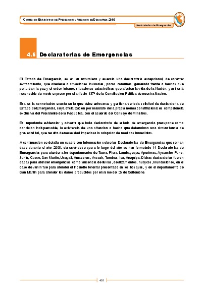 El Estado de Emergencia, es en su naturaleza y esencia una declaratoria excepcional, de carácter extraordinario, que obedece a situaciones inusuales, pocos comunes, generada frente a hechos que perturban la paz y el orden interno, situaciones catastróficas que afecten la vida de la Nación, y así está reconocido de modo expreso por el artículo 137º de la Constitución Política de nuestra Nación