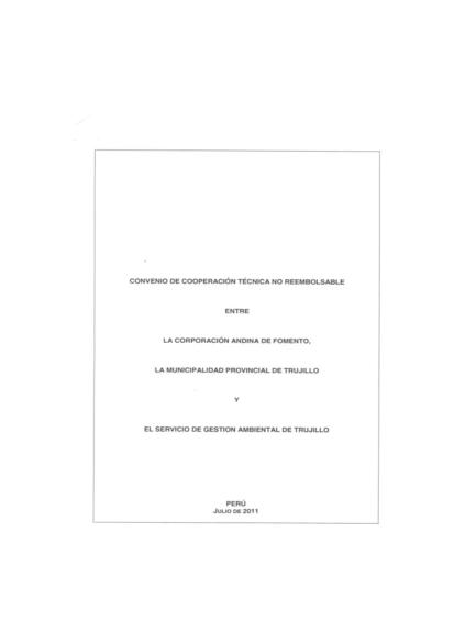 Convenio de Cooperación Técnica no reembolsable entre la Cooperación Andina de Fomento, la Municipalidad Provincial de Trujillo y el SEGAT