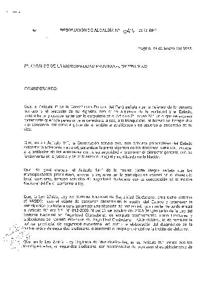 Mediante esta resolución se crea el Observatorio Provincial de Convivencia y Seguridad Ciudadana de Trujillo como un organismo dependiente del Comité Provincial de Seguridad Ciudadana - COPROSEC Trujillo, con la finalidad de recopilar, sistematizar, analizar y proponer políticas públicas en tema de conflictividades sociales, violencias y delitos que afectan la convivencia y la seguridad ciudadana de Trujillo.
