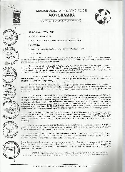Ordenanza Municipal que crea el Área de Conservación Municipal Juninguillo La Mina, Ubicado en la Región San Martín, jurisdicción de la Provincia y Distrito de Moyobamba