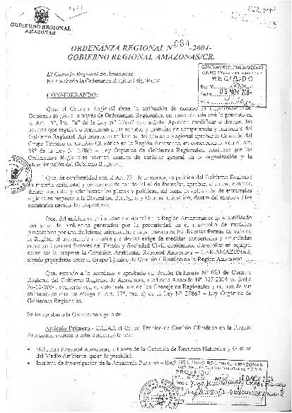 Crear el grupo Técnico de Cambio Climatico en la Región Amazonas.