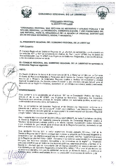 O.R. Que Declara de Necesidad y Utilidad Pùblica y de Interes Regional la Promociòn, Comercializaciòn y Uso Prioritario del Gas Natural para el Desarrollo de la Regiòn La Libertad, Sustentado en un Enfoque Econòmico, Social y Ambiental.