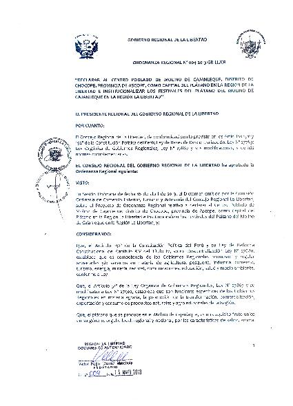 DECLARAN AL CENTRO POBLADO DEL MOLINO CAJANLEQUE, DISTRITO DE CHOCOPE, PROVINCIA DE ASCOPE, COMO CAPITAL DEL PLATANO EN LA REGIÓN LA LIBERTAD E INSTITUCIONALIZAR LOS FESTIVALES DEL PLÁTANO DEL MOLINO DE CAJANLEQUE EN LA REGIÓN LA LIBERTAD
