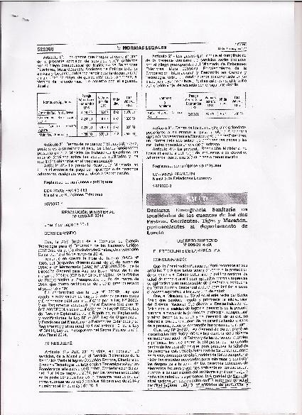 Declaran emergencia sanitaria enm localidades de las cuencas de los rios Pastaza, Corrientes, Tigre y Marañon del Dep. de Loreto