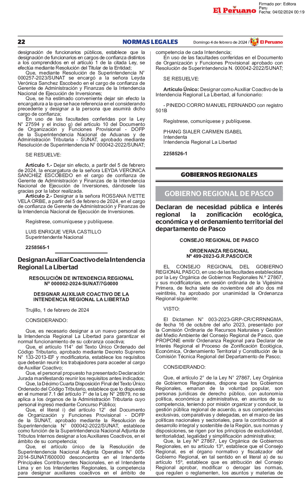 SE DECLARA DE NECESIDAD PUBLICA E INTERÉS REGIONAL LA ZONIFICACIÓN ECOLÓGICA, ECONÓMICA Y EL ORDENAMIENTO TERRITORIAL DEL DEPARTAMENTO DE PASCO, así como la constitución de la COMISIÓN TÉCNICA REGIONAL DE ZONIFICACION ECOLÓGICA, ECONÓMICA Y EL ORDENAMIENTO TERRITORIAL DEL DEPARTAMENTO DE PASCO, que tiene como objetivo propiciar la coordinación y acompañamiento en la elaboración, aprobación y ejecución de este instrumento técnico sustentatorio inicial para el ordenamiento territorial, a cargo del nivel de gobierno correspondiente.