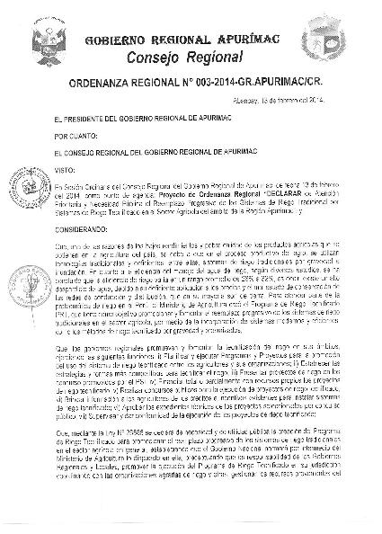 DECLARAR, de atención prioritaria y necesidad pública el reemplazo progresivo de los sistemas de riego tradicional por sistemas de riego tecnificado en el sector agrícola del ámbito de la Región Apurímac