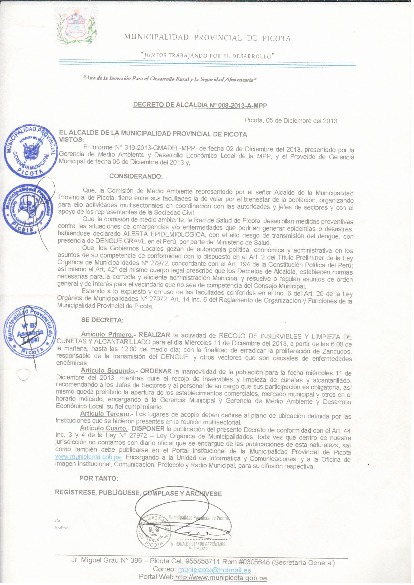 Decreto de Alcaldìa para realizar la actividad de Recojo de Inservibles y Limpieza de Cunetas y Alcantarillado