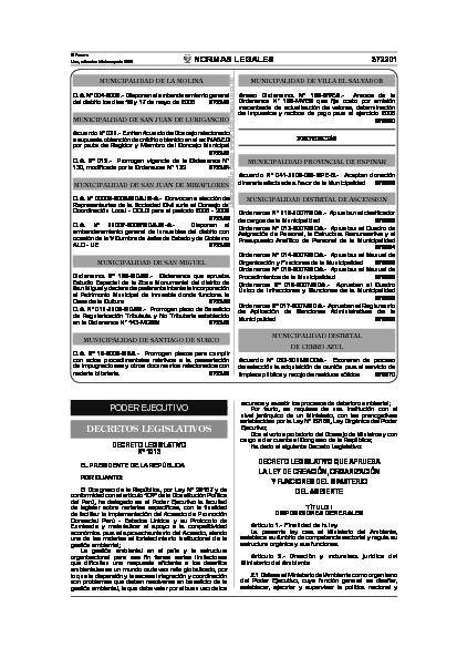 Decreto Legislativo de creación, organización y funciones del Ministerio del Ambiente