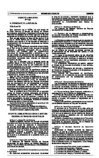 Decreto Legislativo que crea el Sistema Nacional de Parques Industriales