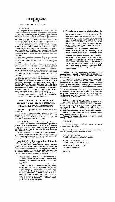 Decreto Legislativo que establece medidas que garanticen el patrimonio de las Áreas Naturales Protegidas