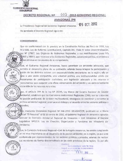 DECRETO REGIONAL N°005-2012-GOBIERNO REGIONAL DE AMAZONAS