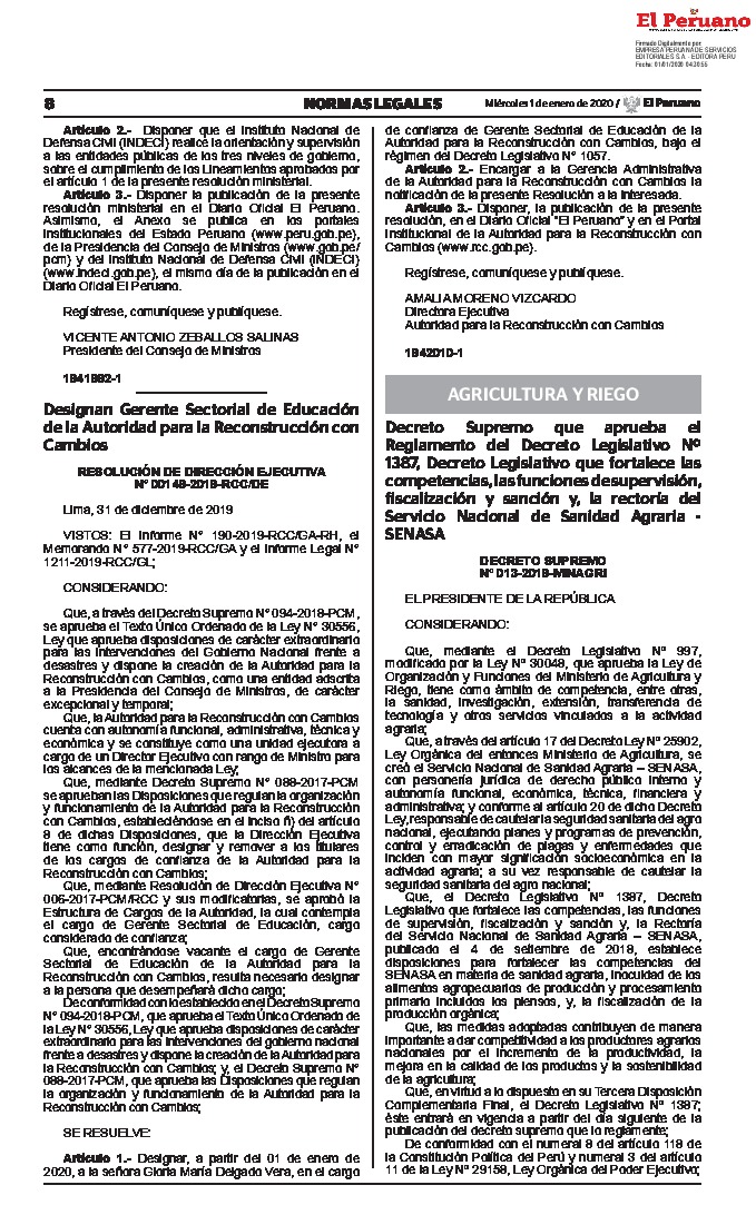 Decreto Supremo que aprueba el Reglamento del Decreto Legislativo Nº 1387, Decreto Legislativo que fortalece las competencias, las funciones de supervisión, fiscalización y sanción y, la rectoría del Servicio Nacional de Sanidad Agraria - SENASA