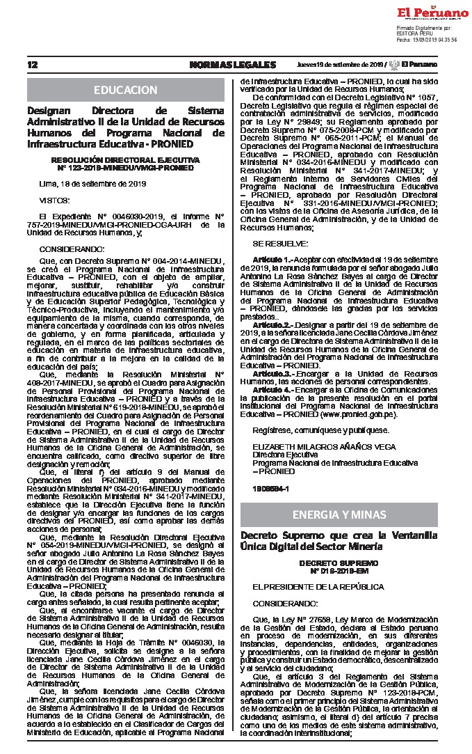 Decreto Supremo que crea la Ventanilla Única Digital del Sector Minería