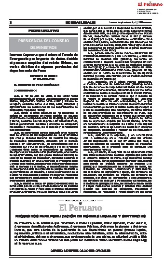 DECRETO SUPREMO QUE DECLARA EL ESTADO DE EMERGENCIA POR IMPACTO DE DAÑOS DEBIDO AL PROCESO ERUPTIVO DEL VOLCÁN UBINAS, EN VARIOS DISTRITOS DE ALGUNAS PROVINCIAS DEL DEPARTAMENTO DE PUNO
