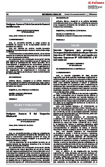 Decreto Supremo que prorroga la Emergencia Sanitaria declarada por Decreto Supremo N° 008-2020-SA, prorrogada por Decretos Supremos N° 020-2020-SA y N° 027-2020-SA
