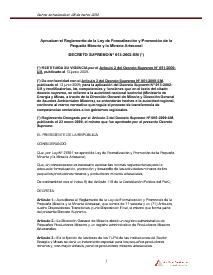 Mediante el presente Decreto Supremo se aprueba el Reglamento de la Ley de Formalización y Promoción de la Pequeña Minería y la Minería Artesanal