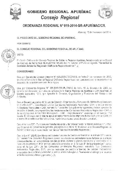 DEROGAR, la Ordenanza Regional Nº 025-2009-CR- APURIMAC, de fecha 15 de diciembre del 2009, que aprueba la adecuación normativa de la Comisión Ambiental Regional de Apurímac, al Decreto Legislativo Nº 1013, Ley de Creación, Organización y Funciones del Ministerio del Ambiente y la CONSTITUCION de la Comisión Ambiental, de carácter multisectorial y participativo, encargado de coordinar y concertar la política ambiental regional, promoviendo el dialogo y el acuerdo entre los sectores públicos y privado, brindando apoyo al Gobierno Regional de Apurímac