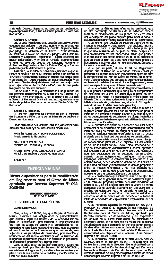 Dictan disposiciones para la modificación del Reglamento para el Cierre de Minas aprobado por Decreto Supremo N° 033- 2005-EM