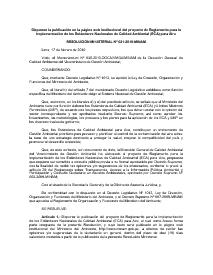 La presente resolución dispone la publicación del proyecto de Reglamento para la Implementación de los Estándares Nacionales de Calidad Ambiental (ECA) para Aire, cuyo texto será publicado en la página web institucional del Ministerio del Ambiente, http://www.minam.gob.pe, a efectos de recibir las opiniones y/o sugerencias de la ciudadanía en general, dentro del plazo de diez (10) días calendario contados a partir de la publicación de la presente Resolución Ministerial.