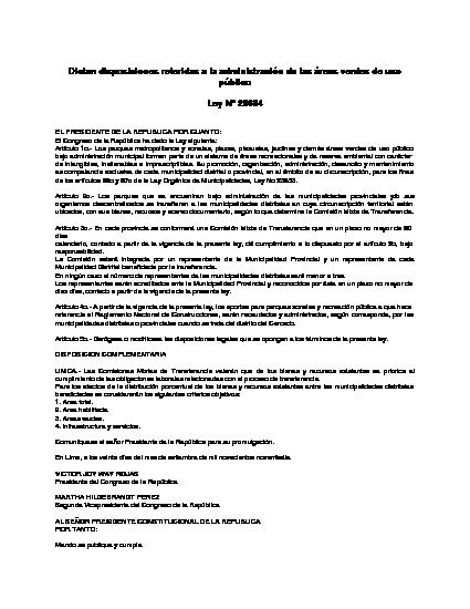 Disposiciones Referidas a la administración de las áreas verdes de uso público