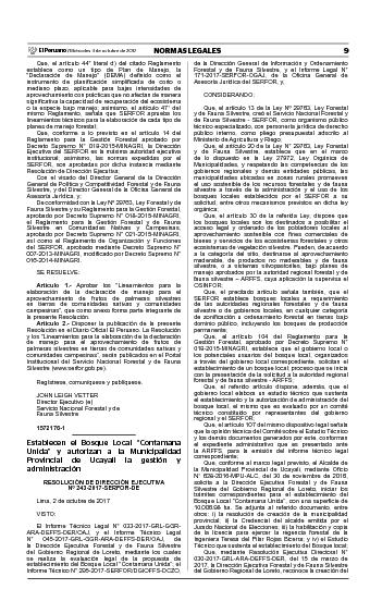 RESOLUCIÓN DE DIRECCIÓN EJECUTIVA Nº 243-2017-SERFOR-DE y Anexos de la Res. N° 243-2017-SERFOR-DE mediante la cual se estableció el Bosque Local “Contamana Unida