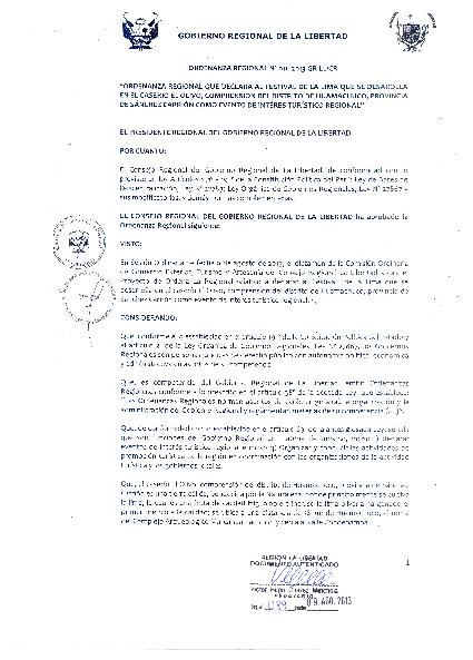 Declarar el festival de la lima en el caserío El Olivo, comprensión del distrito de Huamachuco, provincia de Sánchez Carrión, como evento de Interés Turistico Regional.