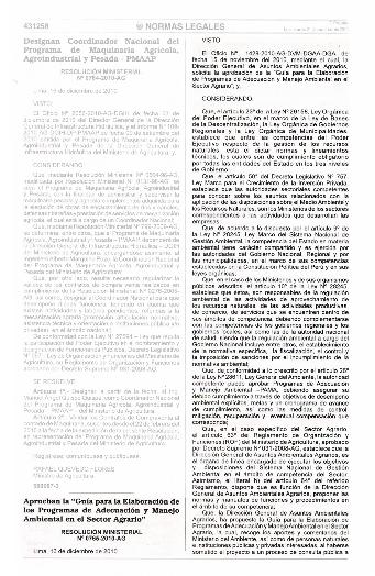 La presente resolución aprueba la guía PAMA en el sector agrario y como norma complementaria faculta a la dirección general de asuntos ambientales Agrarios del Ministerio de Agricultura para que emita los fomrato manuales u otros instrumentos adicionales incluyendo normas complementarias que se pudieran requerir a fin de garantizar el cumplimiento y ejecución de lo aprobado mediante la presente resolución.