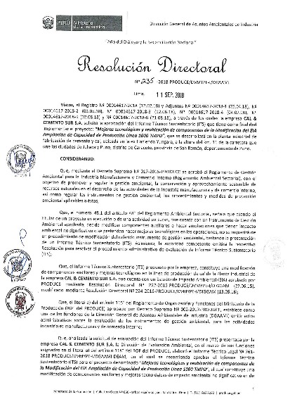 INFORME SUSTENTATORIO MEJORAS TECNOLÓGICAS Y REUBICACIÓN DE COMPONENTES DE LA MODIFICACIÓN DEL EIA CAL & CEMENTO SUR S.A.